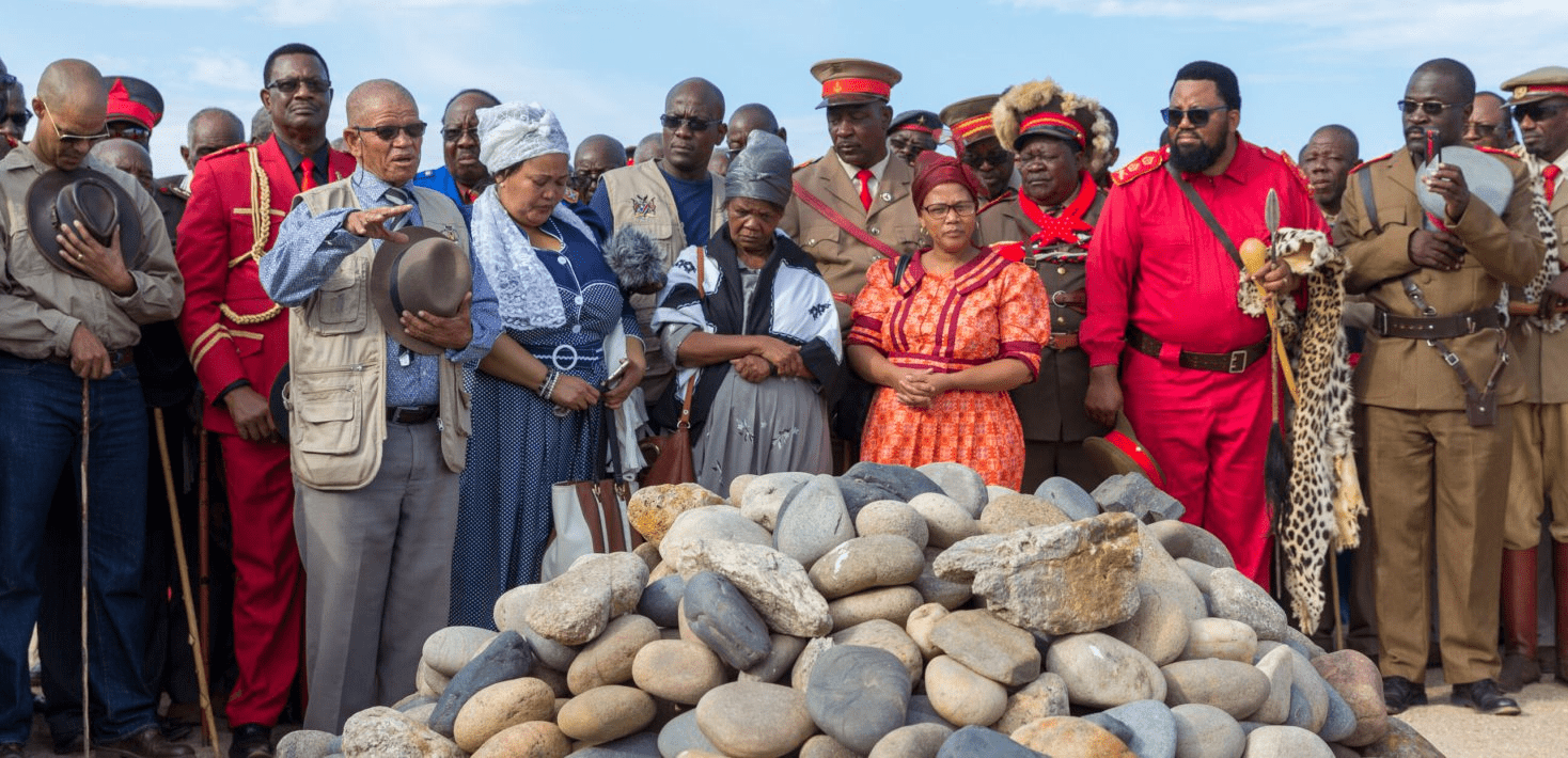 En Namibie, plus d’un siècle après le génocide colonial perpétré par l’Allemagne contre les peuples autochtones ovaherero et nama, les communautés qui en sont les descendantes continuent à subir des répercussions. L’accaparement de terres ancestrales et la perte de patrimoine culturel dus au génocide ont causé des dommages irréparables et des souffrances transgénérationnelles aux descendant·e·s des Namas et des Ovahereros, qui continuent à ce jour.
